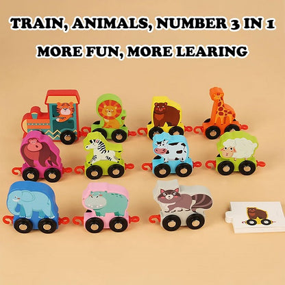 - WOODEN TRAIN TOY SET- The educational toy train is made of non-toxic material and durable wood, BPA-free with no peculiar smell or sharp edges which is safe for kids.