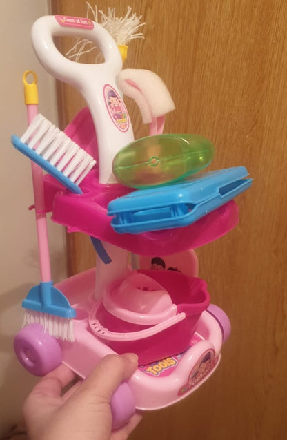 - This pretend play cleaning cart trolley is a fun set for kids, made from top-quality materials. It’s the perfect gift to spark imaginative play and keep children engaged.