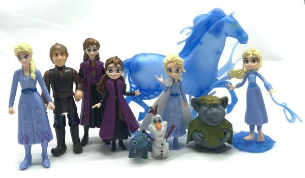 Enhance your child's imaginative play with the Frozen 2 playset. This 10 piece set includes Elsa, Anna, Olaf, and Kristoff figurines, each measuring at 14cm tall. Perfect for cake toppers or endless storytelling possibilities. Bring the magic of Frozen into your home today.