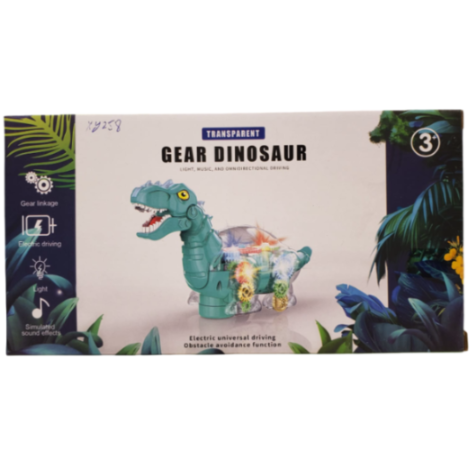 - 360 Degree Rotating Musical Gear Dinosaur with Light, Music & Sound Activity Play Toy with Bump and Go Functions