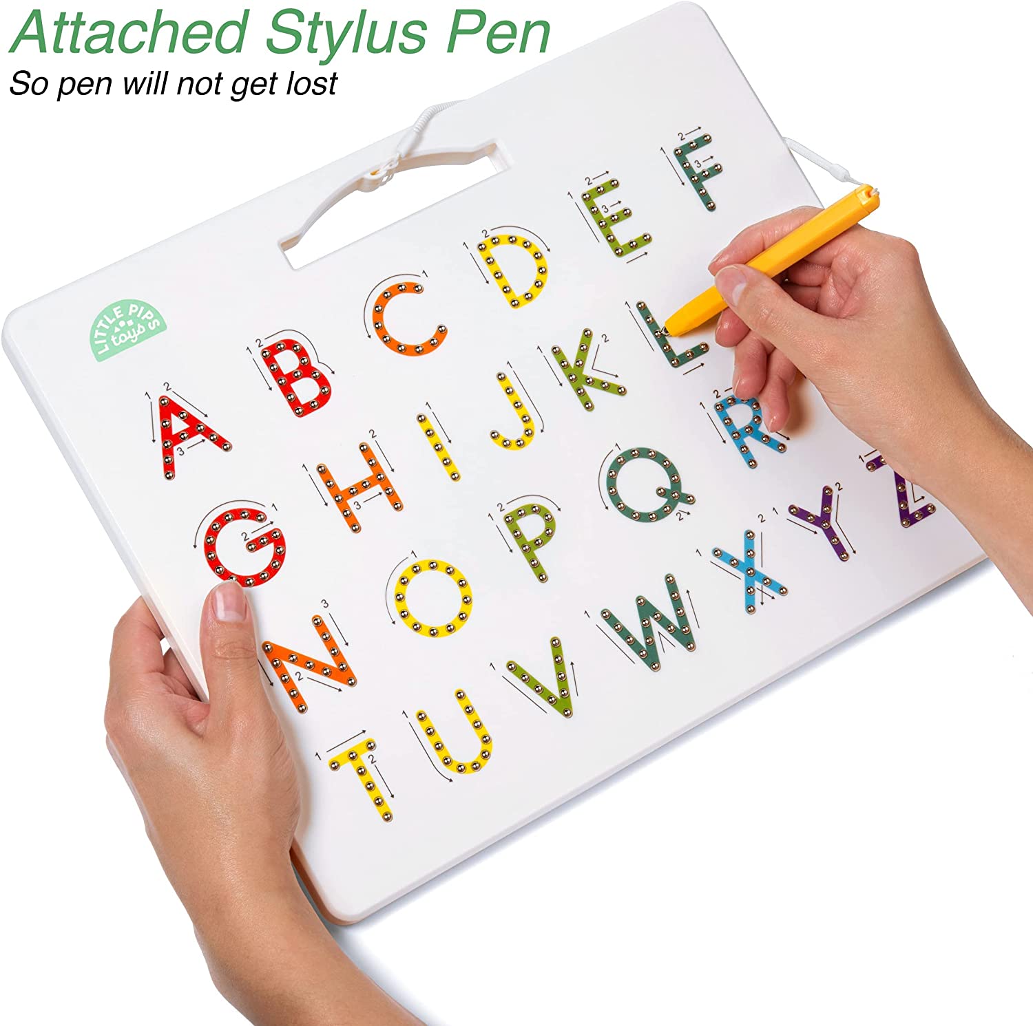 While Some Magnet Board Toys Have Magnets That are too strong, making them difficult for kids to use, the Little Pips Toys magnet letters for kids alphabet learning kid toy was designed to create a Fun, Easy Experience—that also happens to be Educational; We chose High-Quality Materials Suited To Kids in a Lightweight, Sturdy Design; Kids love seeing & hearing the magnet balls of their writing board pop up & down, while all the While Stimulating Brain Development & Fine Motor Skills